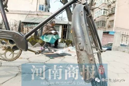 这么多年来,老刘去开封干活,每周去黄河北和新郑钓鱼,都是与这辆自行车一起去的。三年前,闲不住的老刘开始给别人修鞋,这辆自行车当然也要陪伴在老刘身旁。