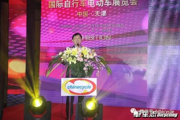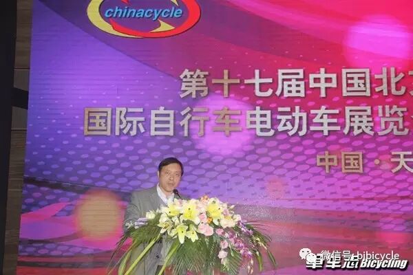 ▲天津市自行车电动车行业协会理事长刘学权发表讲话。