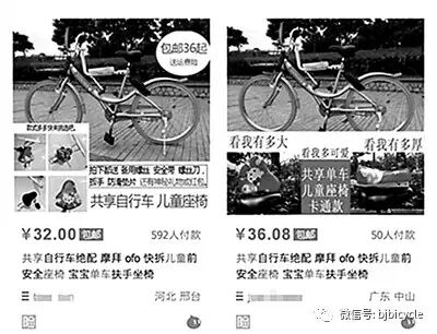 一名发货地点显示为北京的卖家表示,儿童坐椅自共享单车兴起后开始流行,“几乎每天都有订单”,买家来自全国各地。