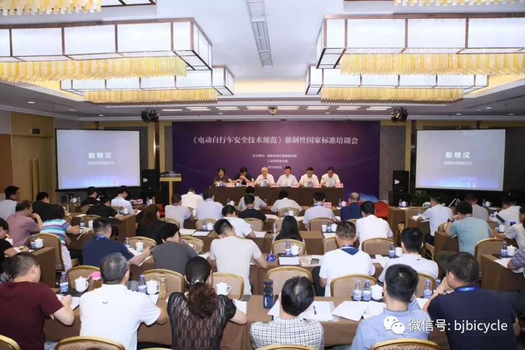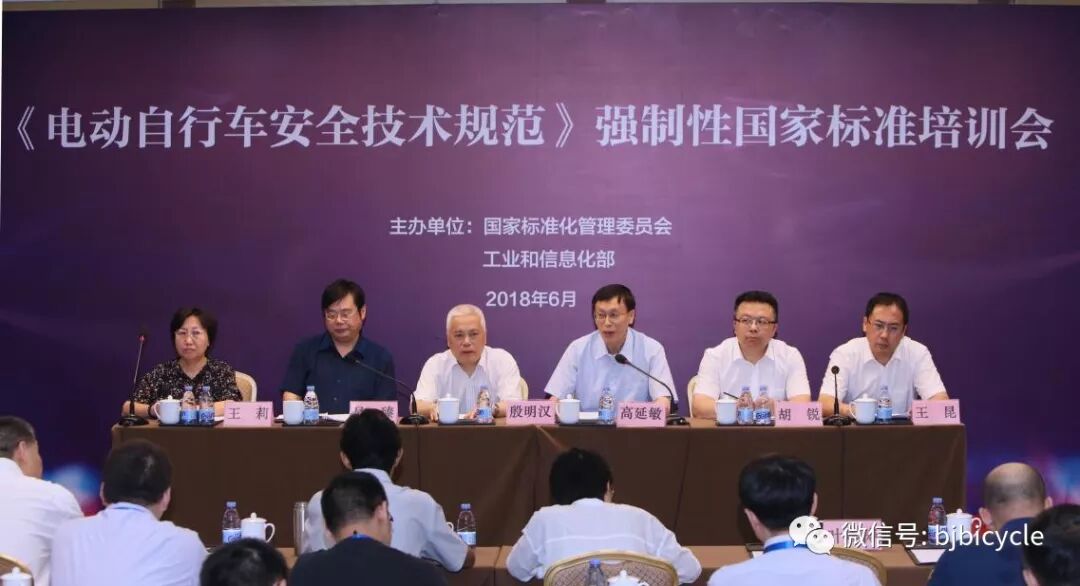 2018年6月25日,由国家标准委、工业和信息化部联合主办的《电动自行车安全技术规范》强制性国家标准培训会在京举行。国家标准化管理委员会副主任殷明汉、工业和信息化部消费品工业司司长高延敏出席会议并讲话。应急管理部消防局、国家市场监督管理总局消费者权益保护局、国家认证认可监督管理委员会认证监管部等部门的相关领导参加了会议。共有来自全国各地产品质量监督、工业和信息化领域80多个部门和单位的90余名代表参加了本次培训。