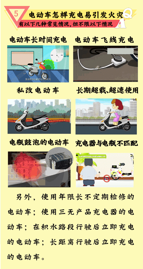 5、决不允许电动自行车在室内公共空间停放、充电。