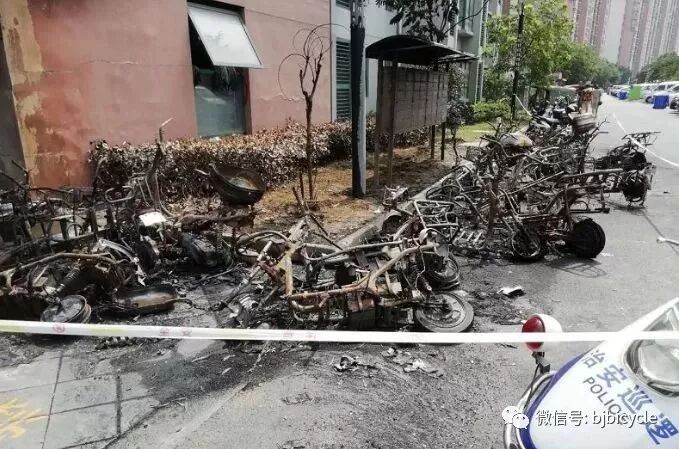 7 月8日凌晨,苏州一小区发生电动车火灾,消防车赶到现场扑救,虽然明火很快扑灭,无人伤亡,但仍有24辆电动车烧成空架。