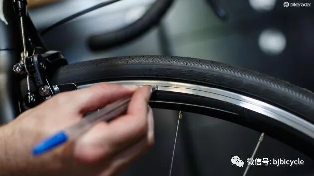许多轮圈制造商提供某种类型的磨损量规,例如沿着圆周制动表面划出一圈浅沟槽或在特定位置钻出一个小浅孔。但是通常来说厂家会用标签表示。你需要找到这些标记并定期检查它们。一旦它们消失,就意味着你需要更换轮圈了。