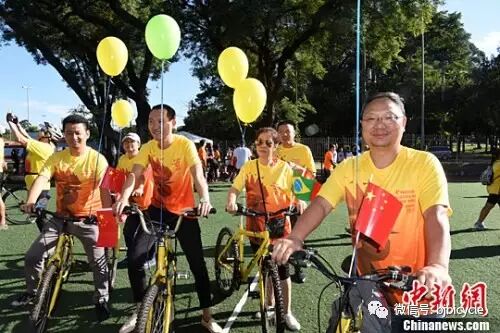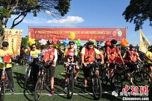当地时间2月12日,由巴西江门五邑青年联合会、巴中工商文化总会联合主办的“巴西圣保罗华人华侨2017年自行车欢乐春节游”活动在圣保罗城市公园举行。