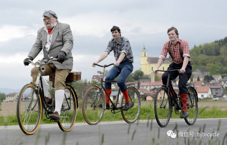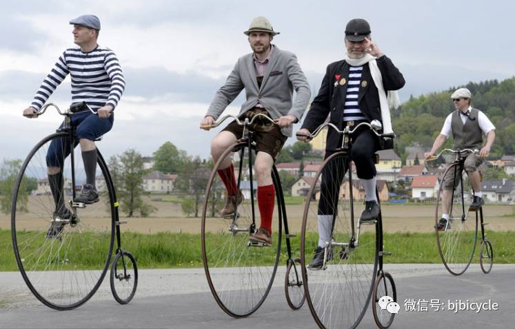 当地时间2017年5月8日,捷克布拉格,自行车爱好者参加传统的“布拉格英里”高轮自行车比赛。捷克高轮自行车俱乐部成立于1880年,其成员每年都参加这样的活动。