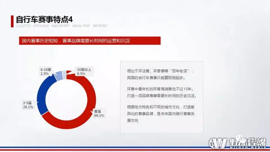 相比于环法赛、环意赛等“百年老店”,我国的自行车赛事只能算刚刚起步。根据野途大数据,目前国内的赛事,连续举办10届以上的,仅占0.5%,而首届举办的赛事,高达69.1%。